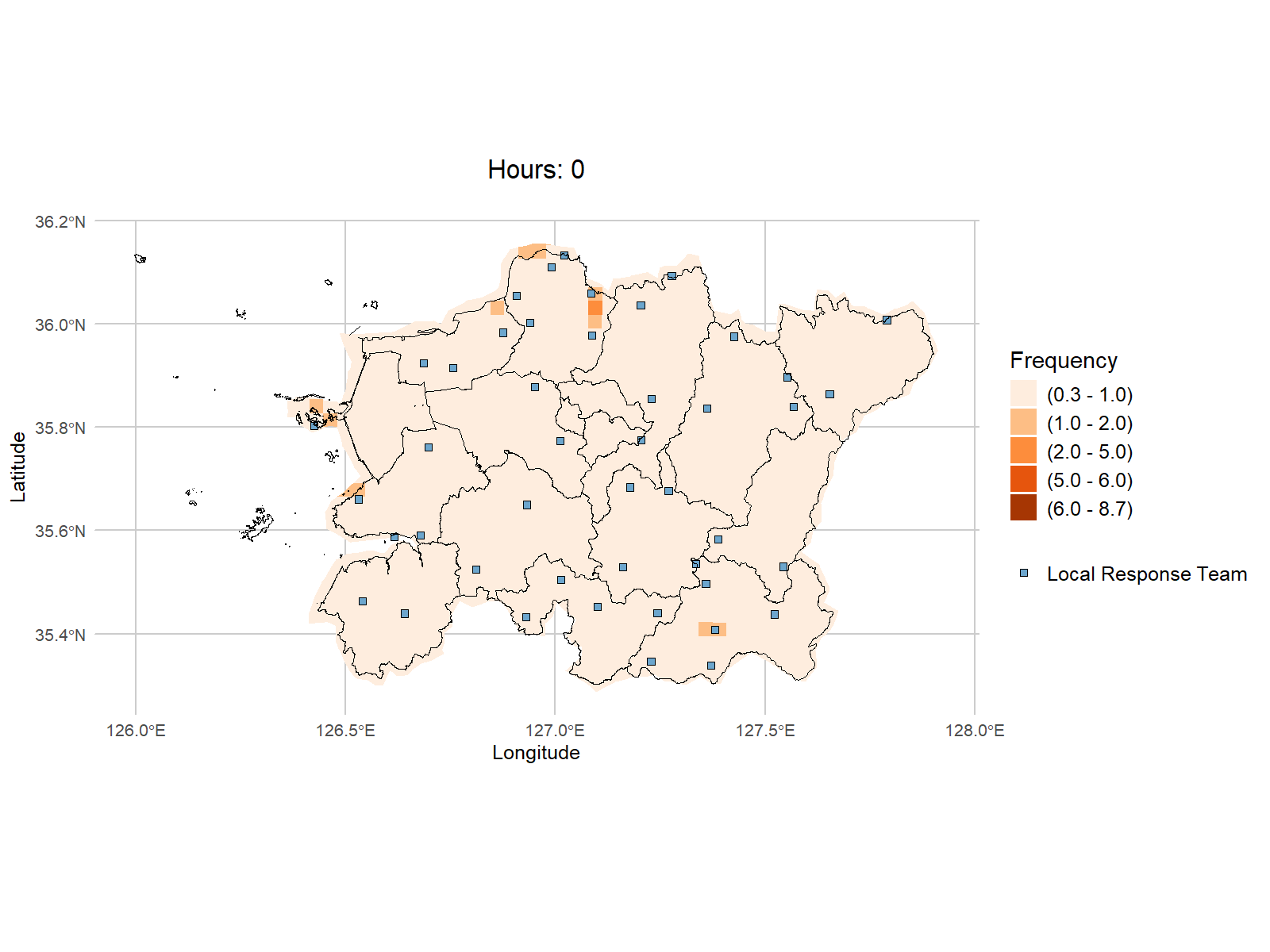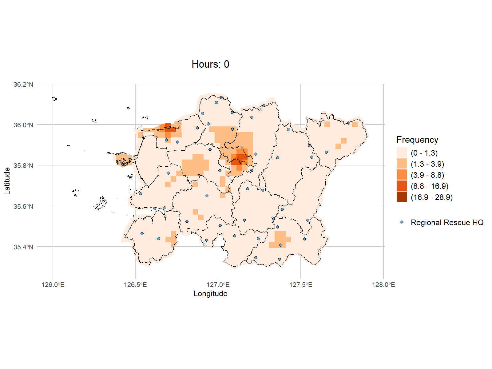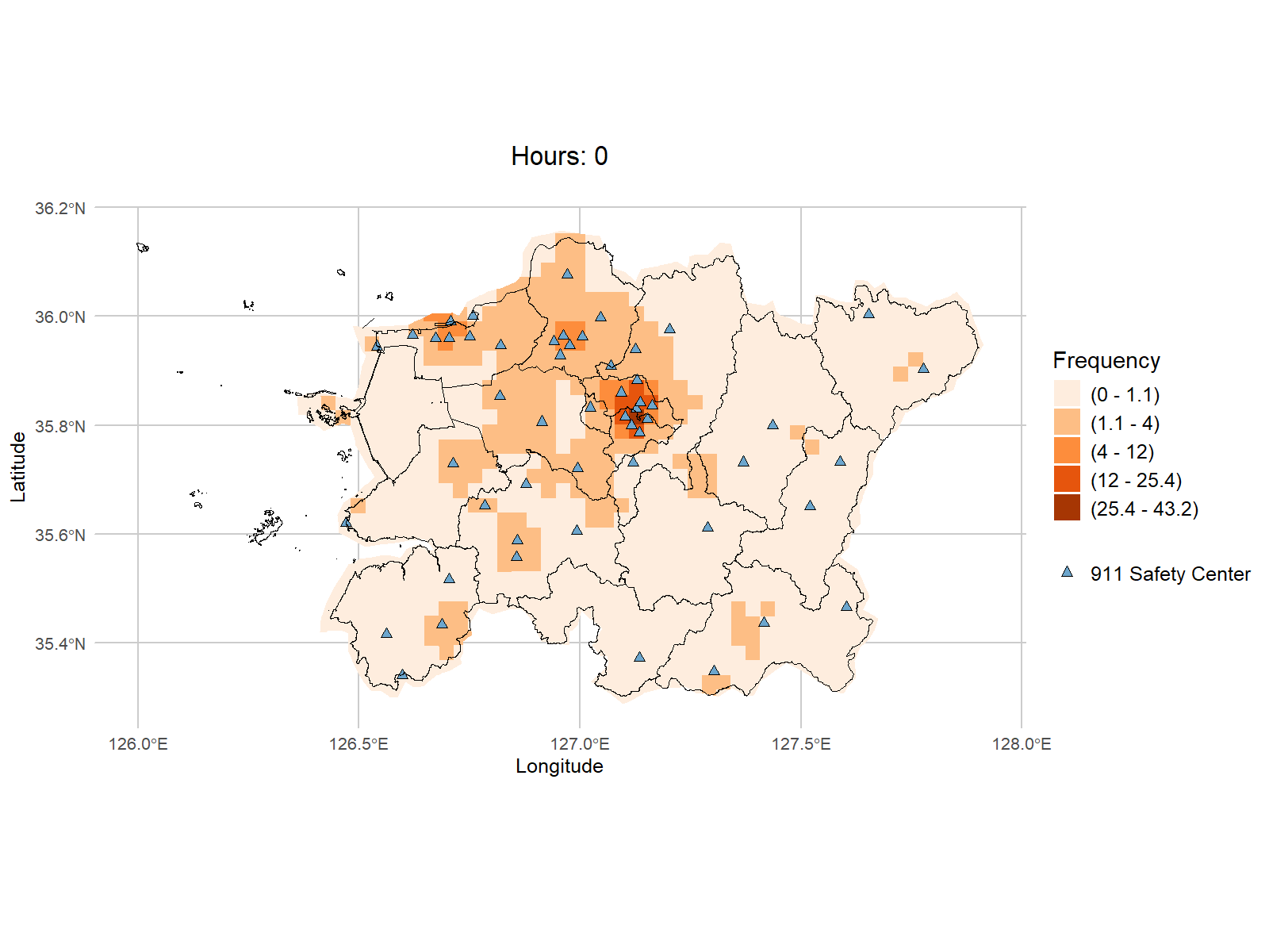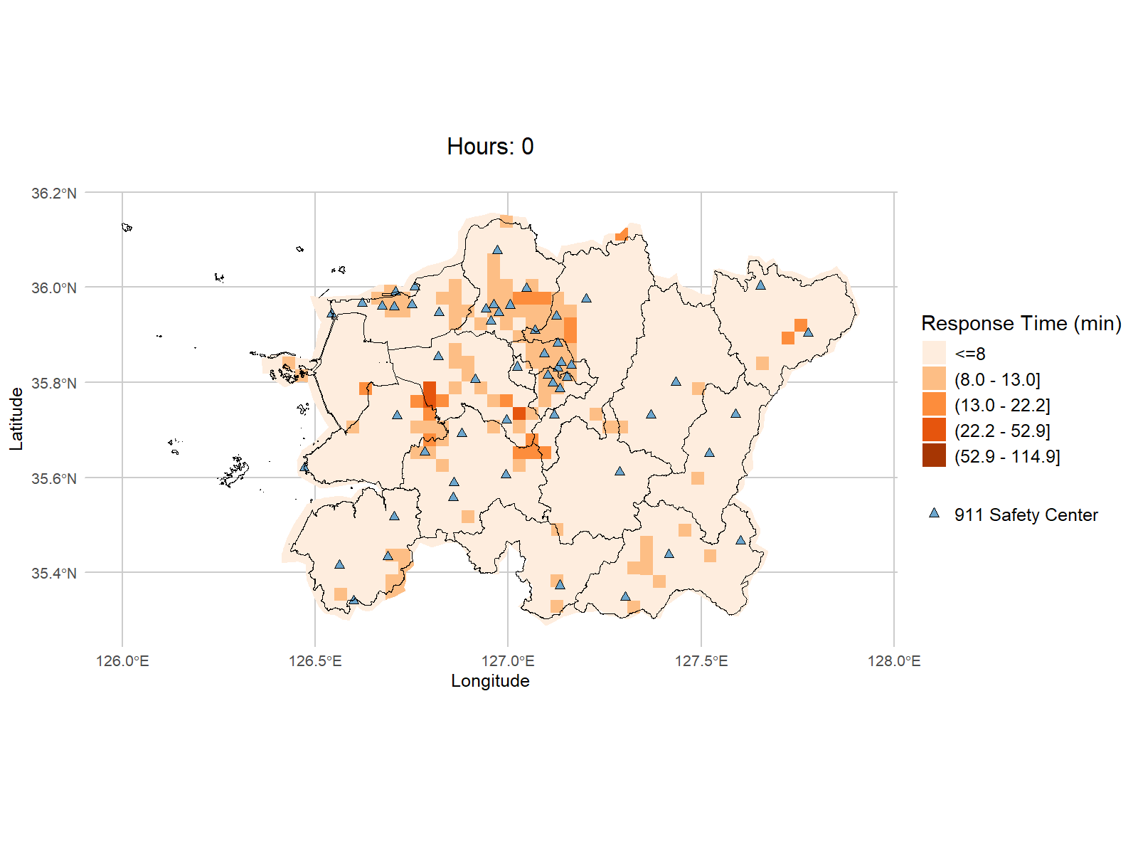 These animations present a timeline of predicted outcomes across regions in the study area, illustrating hourly variations from 0 (12 AM) to 23 (11 PM).